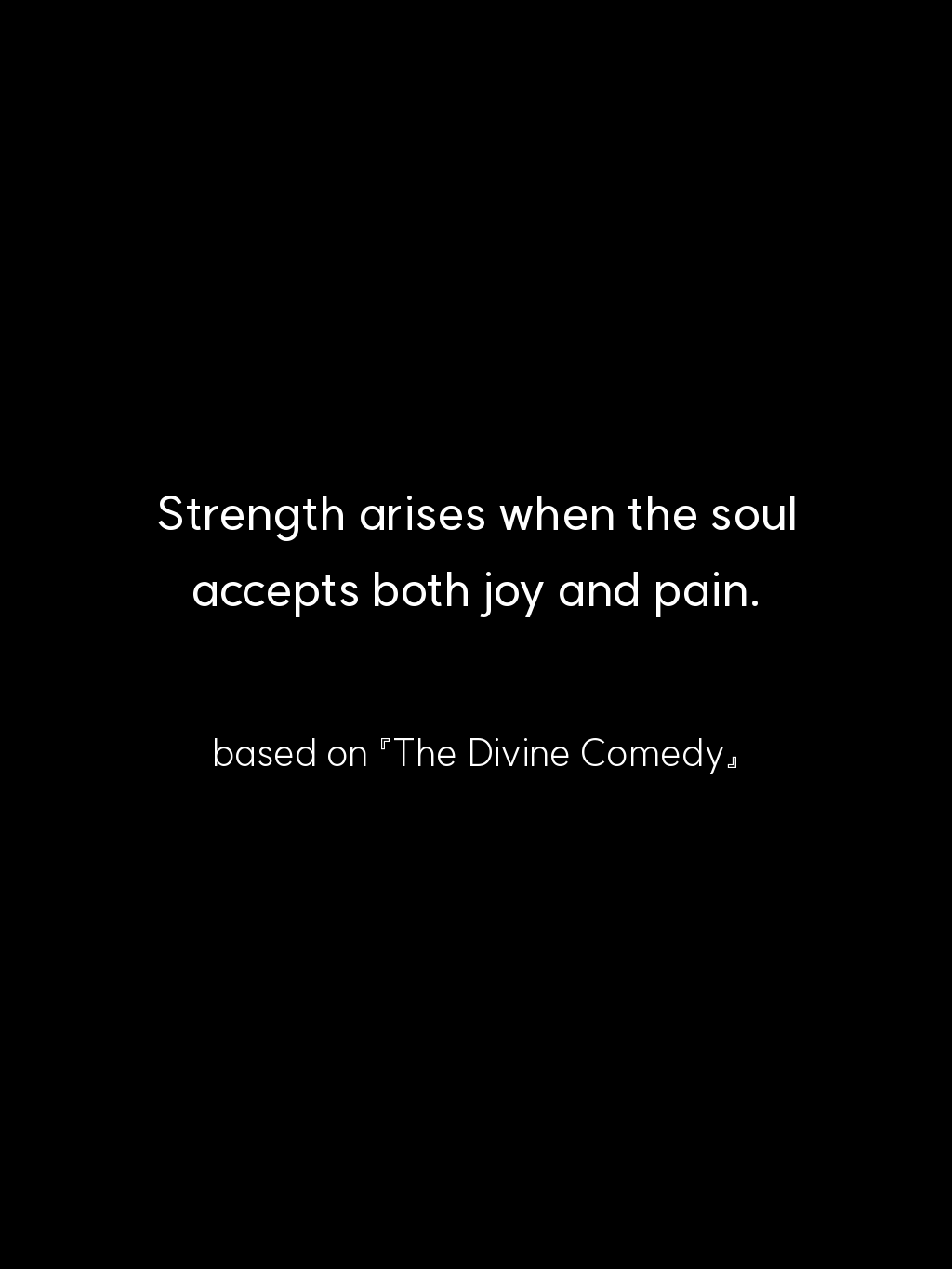• Strength arises when the soul accepts both joy and pain. – based on 『The Divine Comedy』