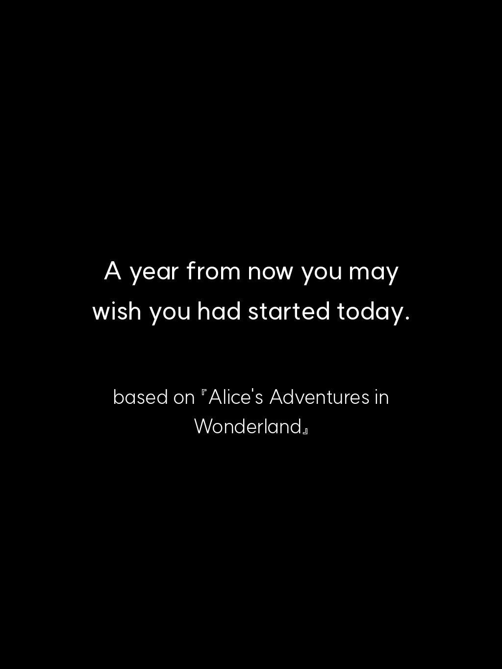 • A year from now you may wish you had started today. – based on 『Alice’s Adventures in Wonderland』