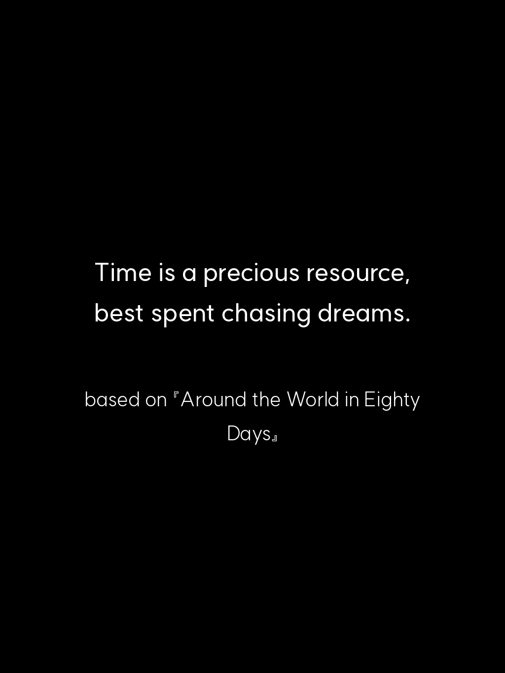 • Time is a precious resource, best spent chasing dreams. – based on 『Around the World in Eighty Days』
