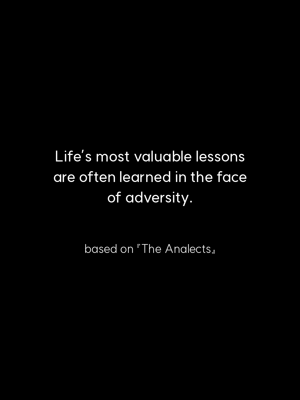 • Life’s most valuable lessons are often learned in the face of adversity. – based on 『The Analects』