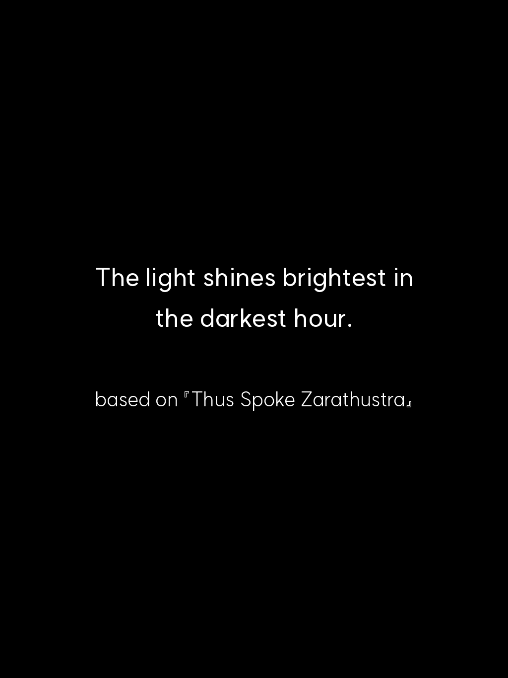 • The light shines brightest in the darkest hour. – based on 『Thus Spoke Zarathustra』