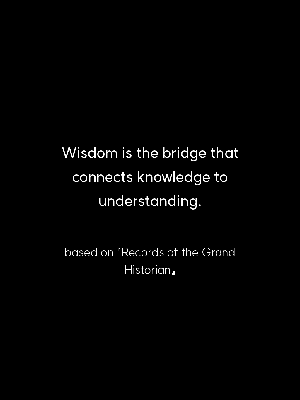 • Wisdom is the bridge that connects knowledge to understanding. – based on 『Records of the Grand Historian』