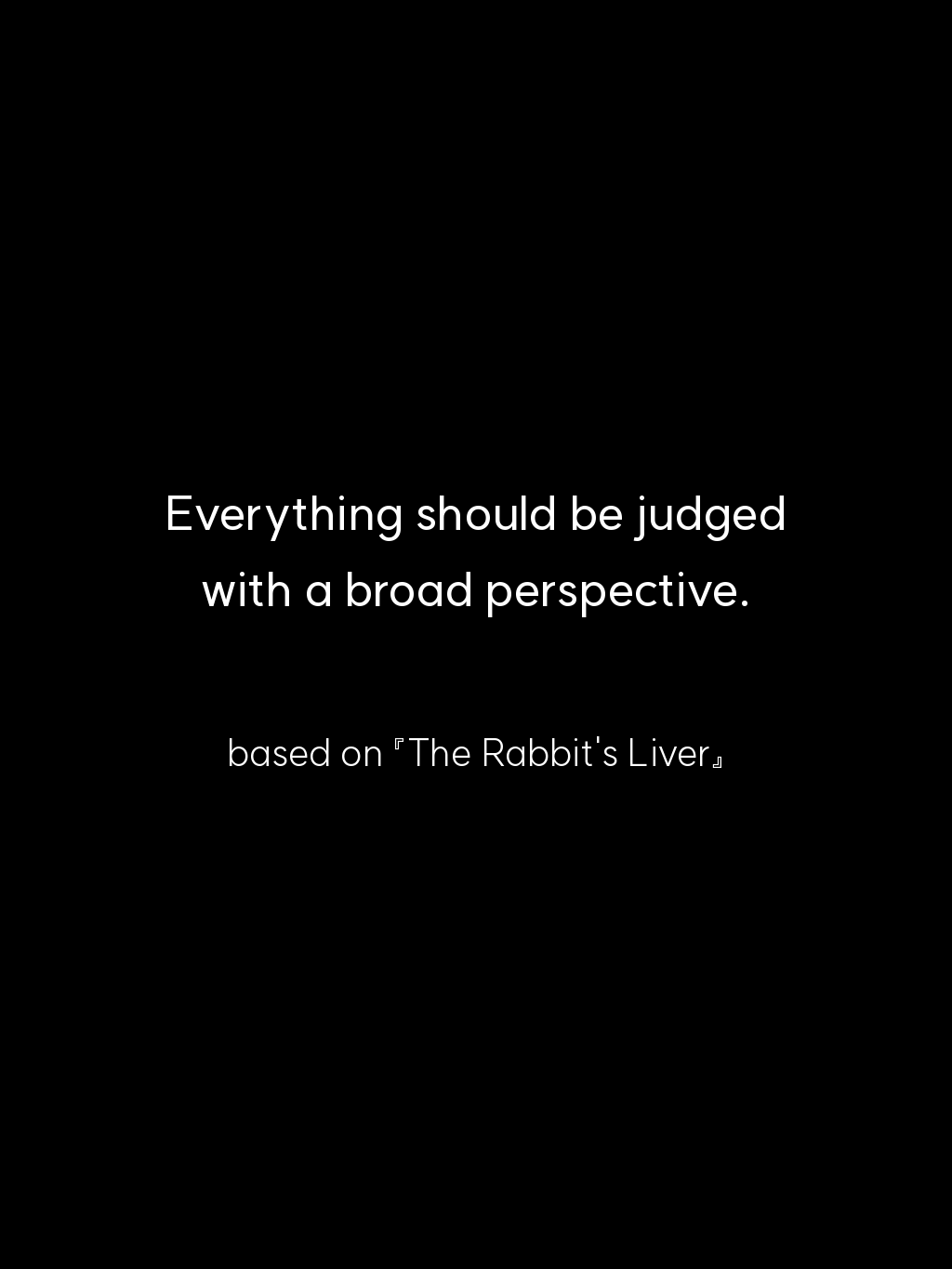 • Everything should be judged with a broad perspective. – based on 『The Rabbit’s Liver』