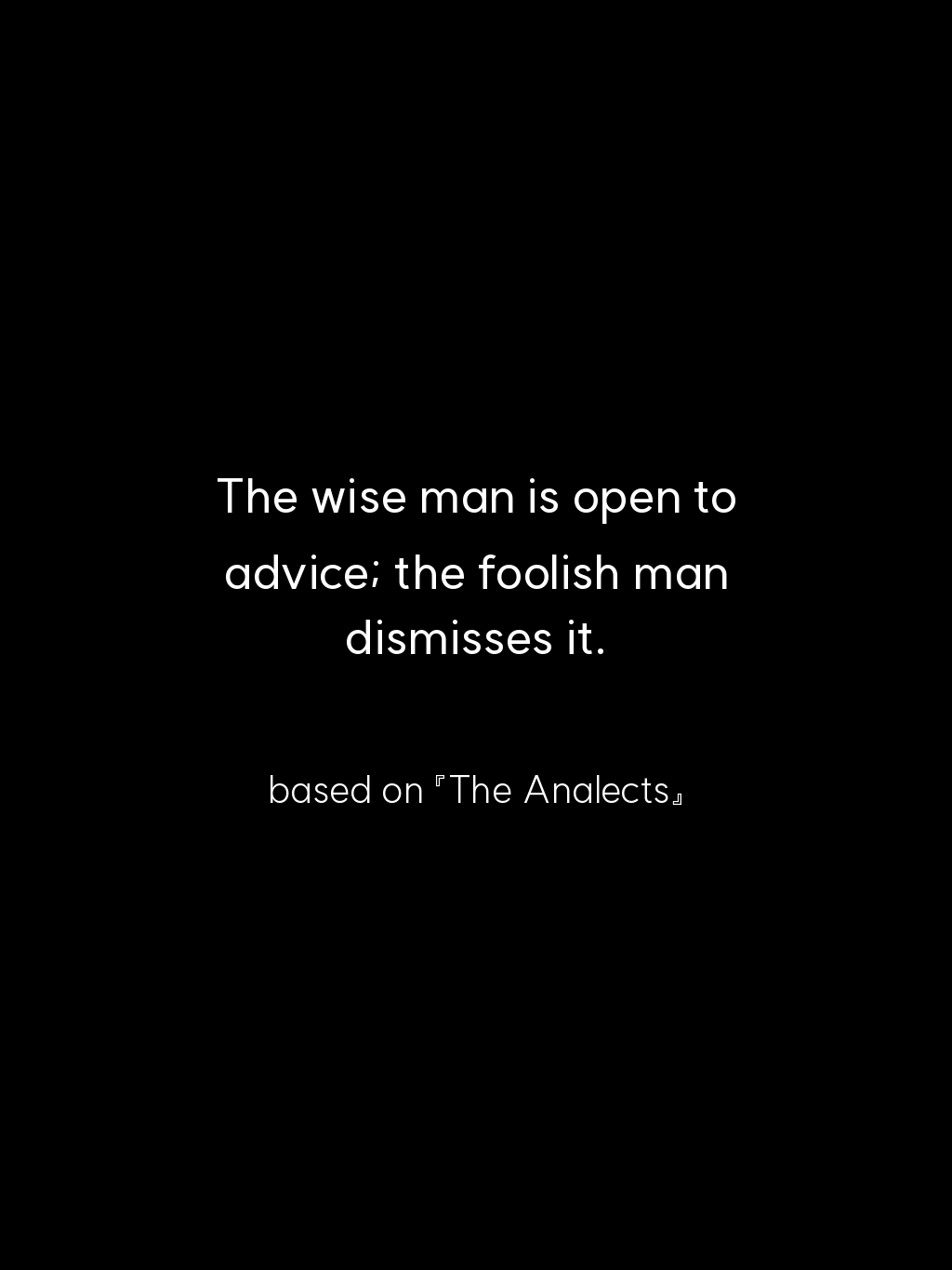 • The wise man is open to advice; the foolish man dismisses it. – based on 『The Analects』