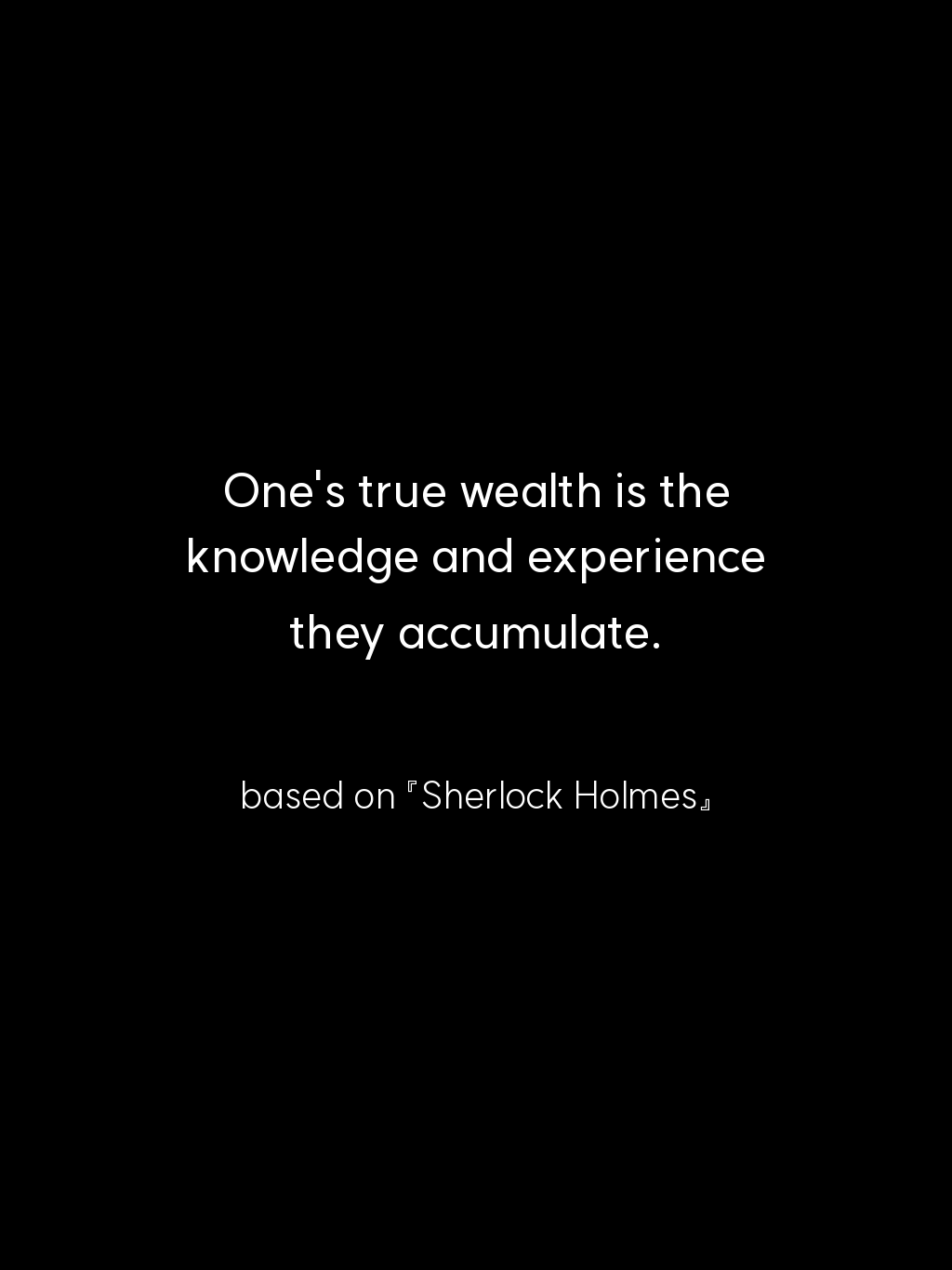 • One’s true wealth is the knowledge and experience they accumulate. – based on 『Sherlock Holmes』