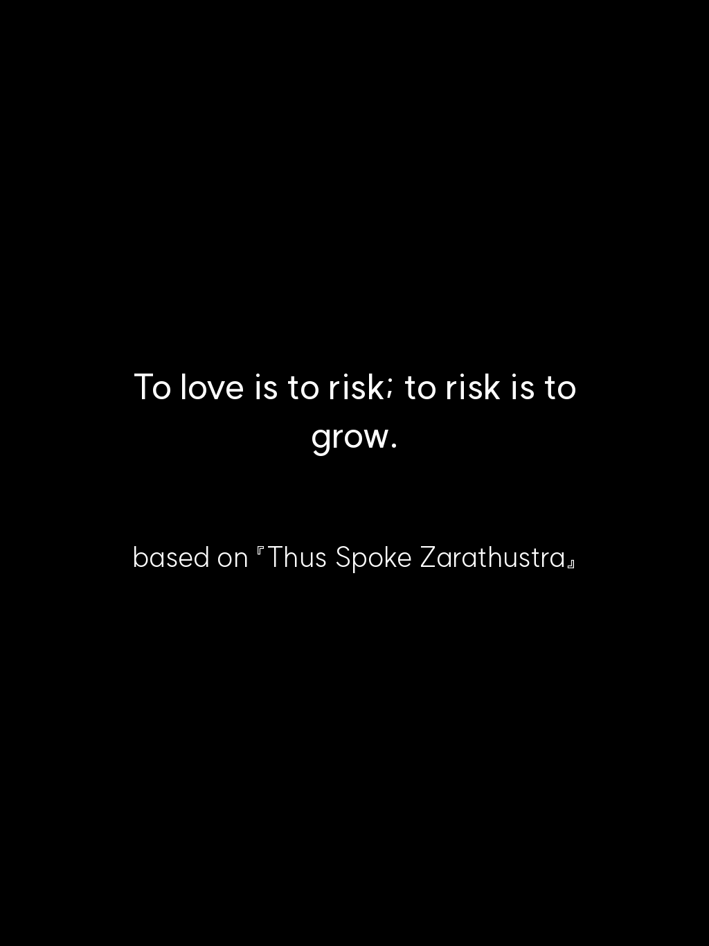 • To love is to risk; to risk is to grow. – based on 『Thus Spoke Zarathustra』
