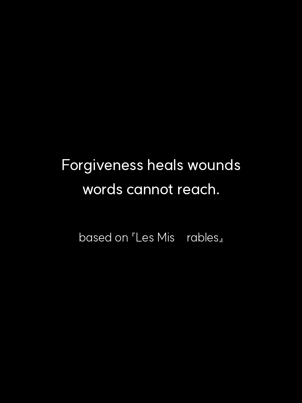 • Forgiveness heals wounds words cannot reach. – based on 『Les Misérables』