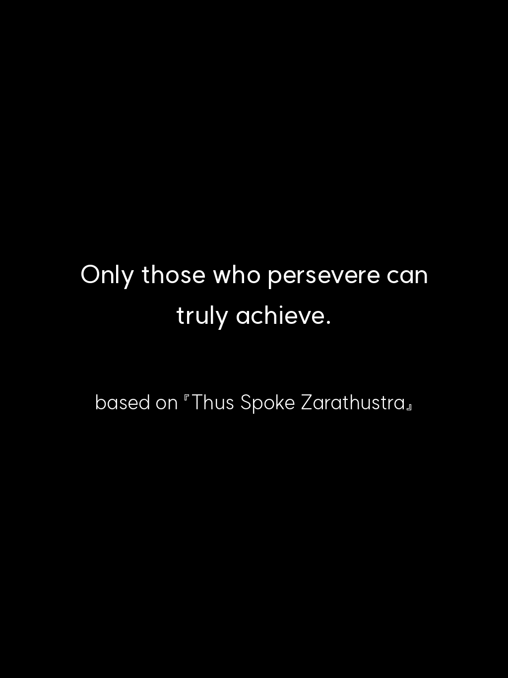 • Only those who persevere can truly achieve. – based on 『Thus Spoke Zarathustra』